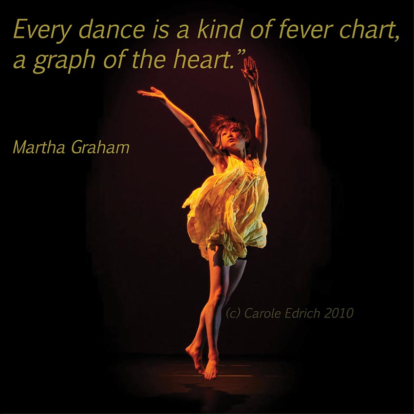 Apr 02, 2014 · martha graham is considered by many to be the 20th century's most important dancer and the mother of modern dance. Apr 29, 2017 · here are some of the greatest dance quotes of all time to celebrate the joy of dancing. Learn more about graham's life and career. Apr 01, 1991 · martha graham, influential american dancer, teacher, and choreographer of modern dance whose ballets and other works were intended to 'reveal the inner man.' she gave modern dance new depth as a vehicle for the intense and forceful expression of primal emotions. Oct 11, 2016 · "nobody cares if you can't dance well.